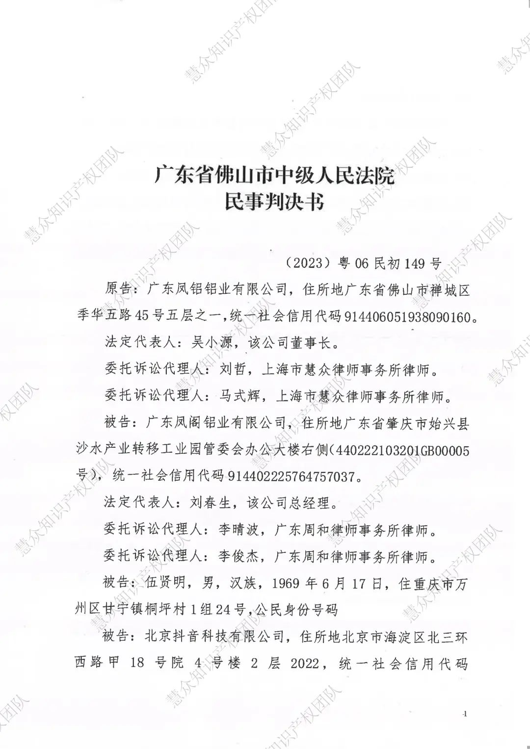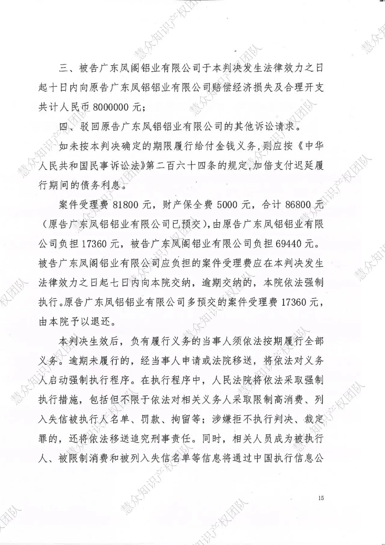 大连判赔800万!辉知队代理“凤铝”商标维权案胜诉